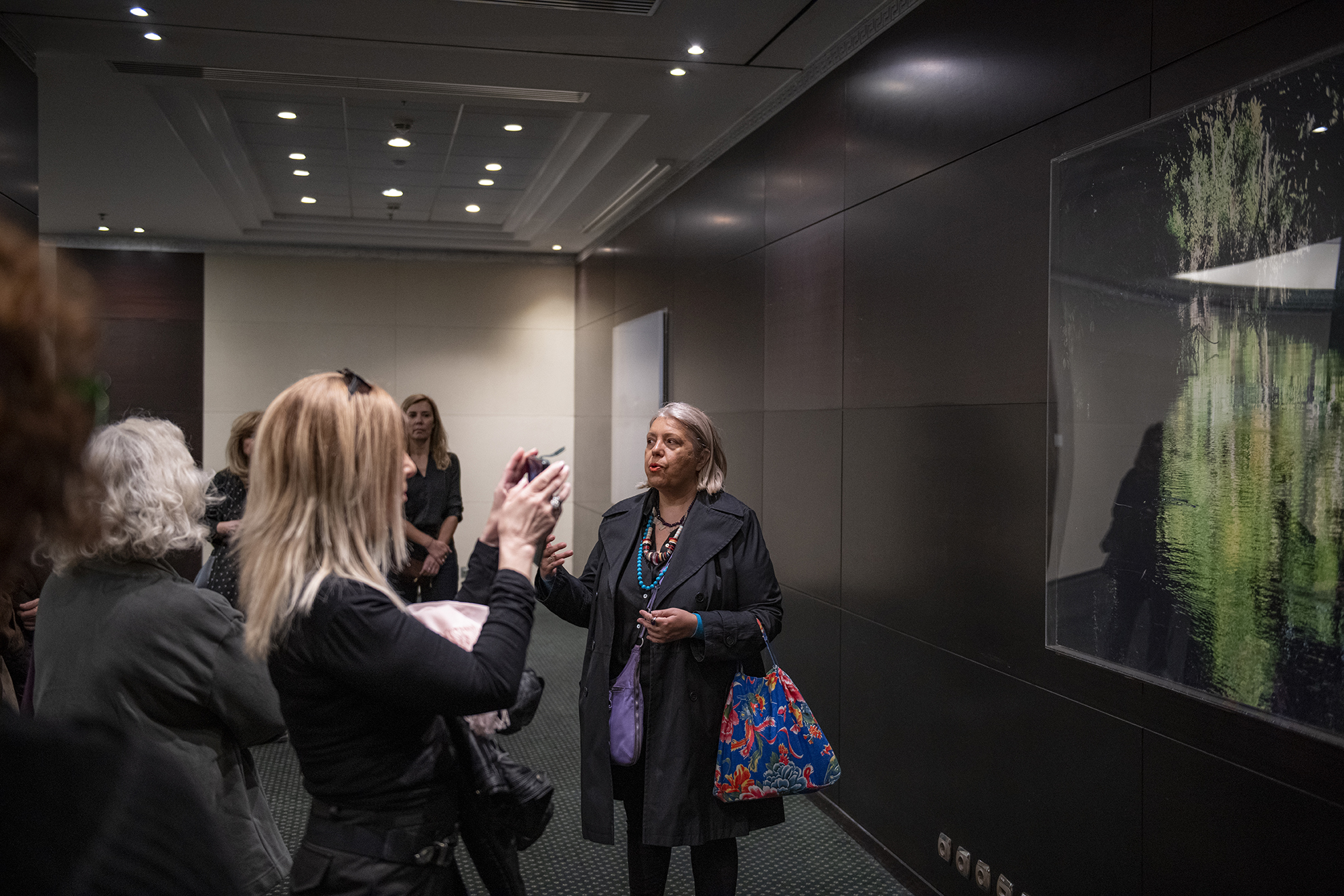 Κεντρικό πρόσωπο της επίσκεψης ήταν η διακεκριμένη κριτικός τέχνης και επιμελήτρια εκθέσεων, Έφη Μιχάλαρου, η οποία έχοντας επιμεληθεί τμήμα της μόνιμης συλλογής την περίοδο 2004-2005, προσέφερε μια εις βάθος ανάλυση των έργων. Η ξενάγηση ξεκίνησε από το εμβληματικό έργο του Γιώργου Λάππα στο Lobby, το οποίο αποτέλεσε και το σημείο συνάντησης των μελών.